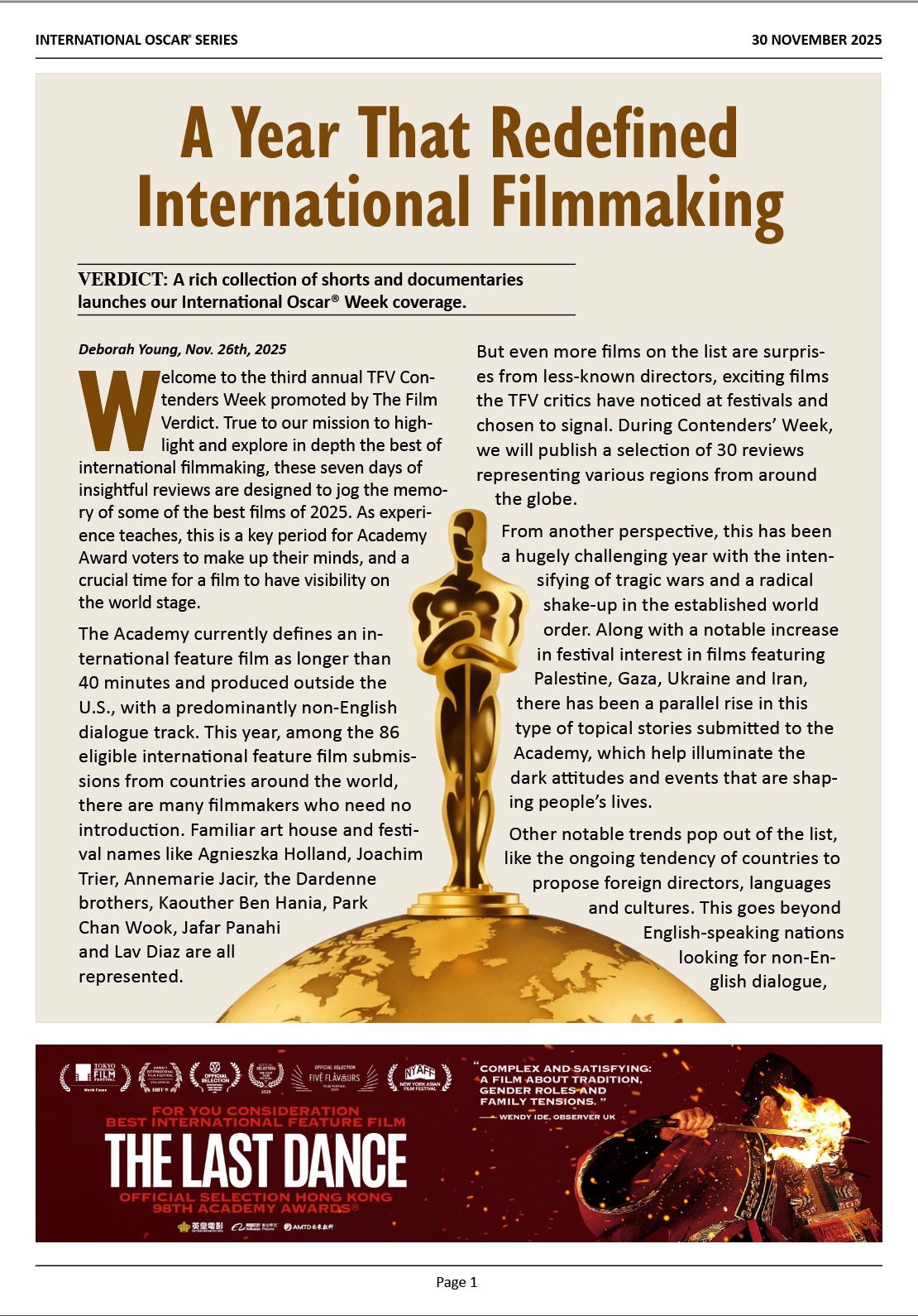 Welcome to the third annual TFV Contenders Week promoted by The Film Verdict. True to our mission...